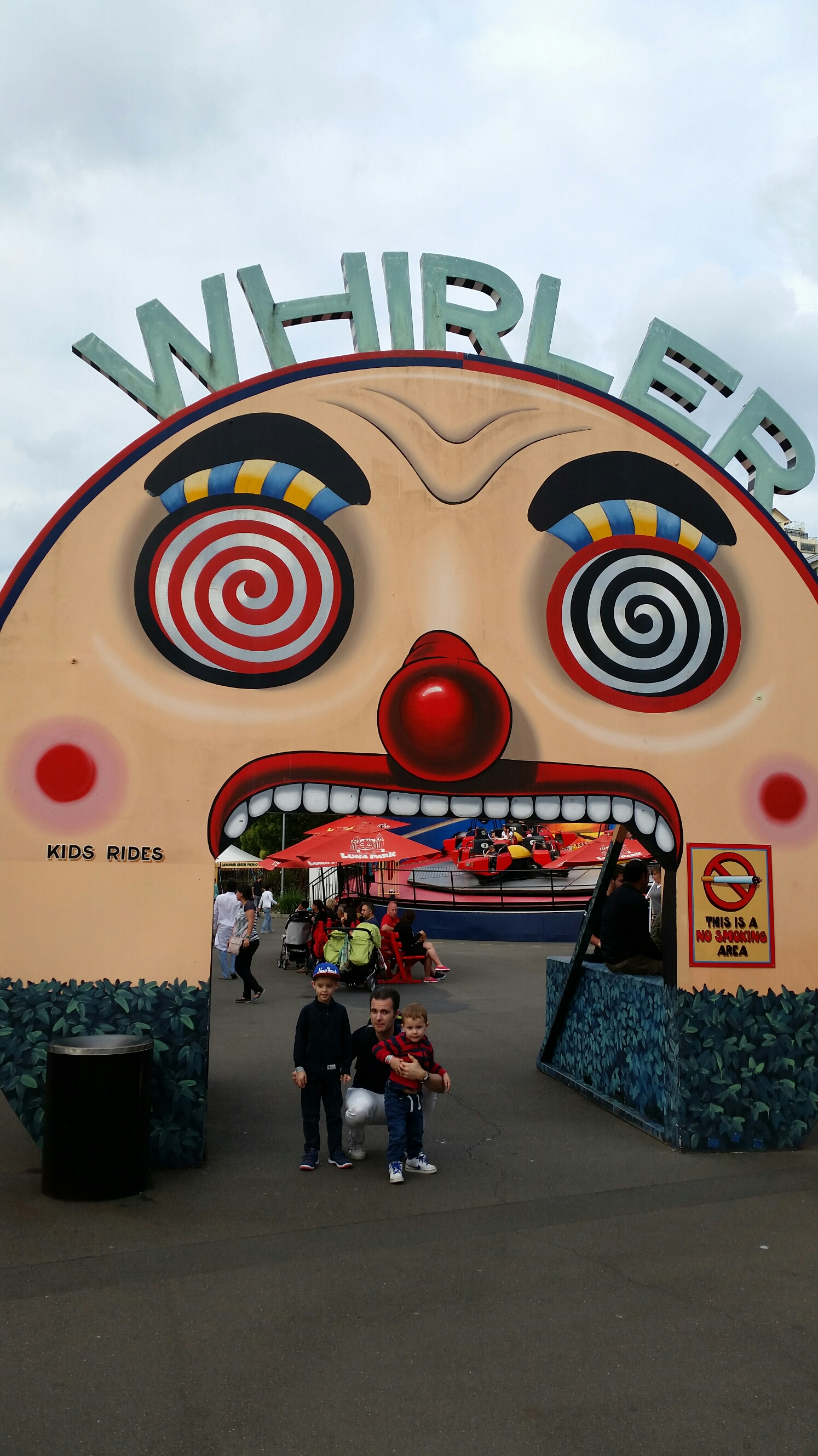 Nere vid kajen på andra sidan bron ligger Luna park. Bussen gick hela vägen. Känns skönt att slippa bil och det är lätt att ta sig runt kollektivt i Sydney. Luna park är en ganska liten nöjespark i äldre stil. Den påminner lite om Gröna lund dock mindre, lugnare och lite charmigare. De hade små miniparader och ganska många halvläskiga figurer.